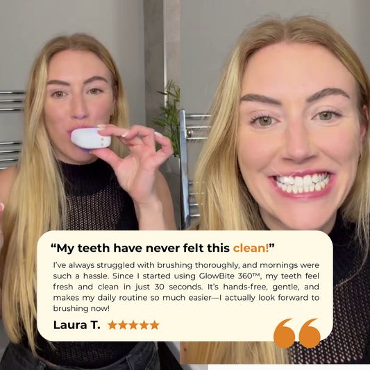 GlowBite 360™ – Hands-Free U-Shape Tooth Cleaner with Sonic Vibration & Blue-Light Whitening