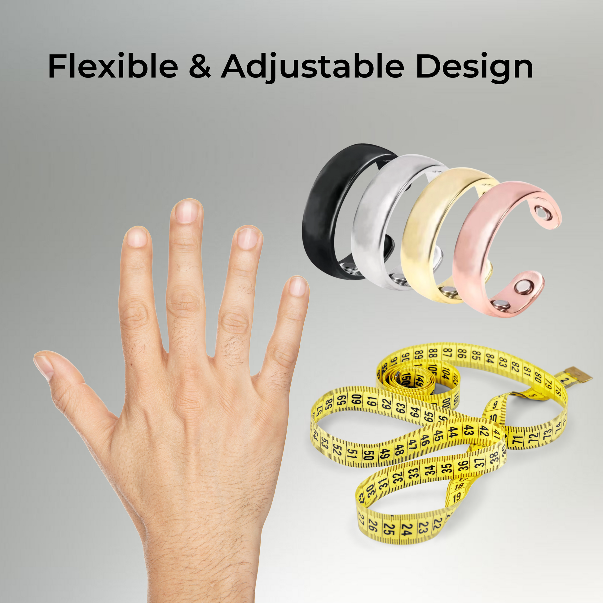 Magnetic therapy works by gently stimulating key pressure points and improving blood circulation through natural magnetic fields. When worn on the finger, the embedded magnets in the Zyro Ring™ interact with your body’s energy flow, helping to reduce inflammation, ease joint discomfort, and support overall wellness — all without any effort on your part.